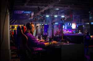 man playing game on personal computer